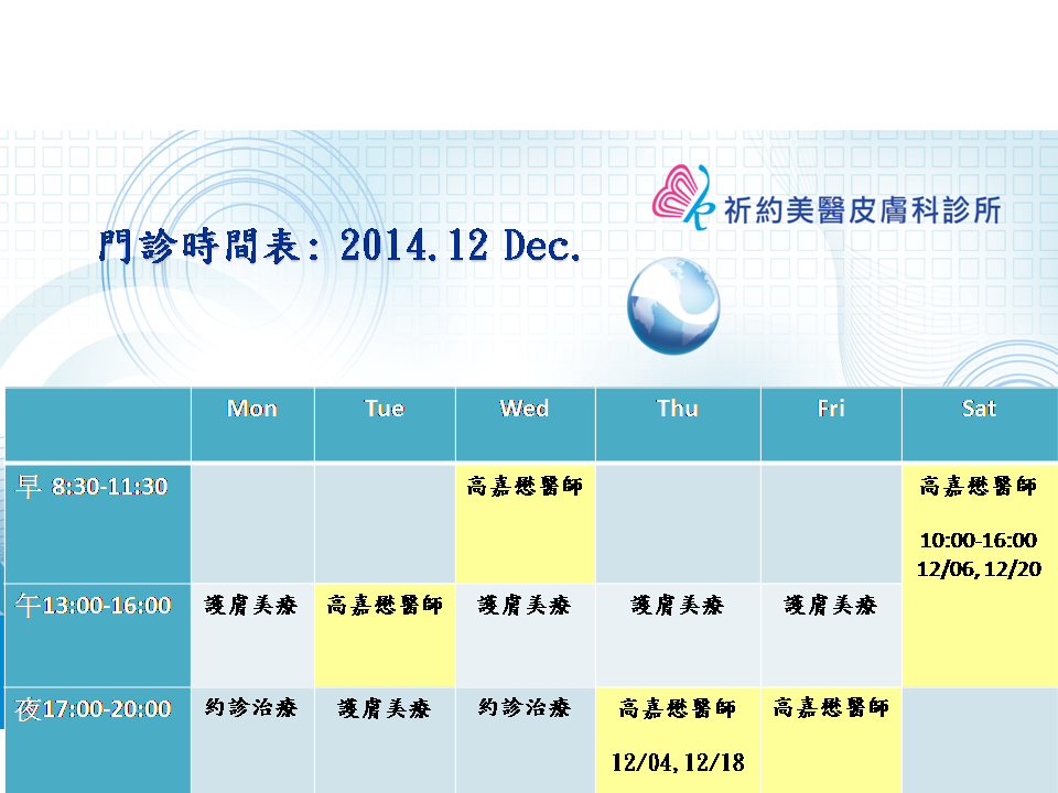 *12月週四開診日為12/04、12/18。 (17:00~20:00)