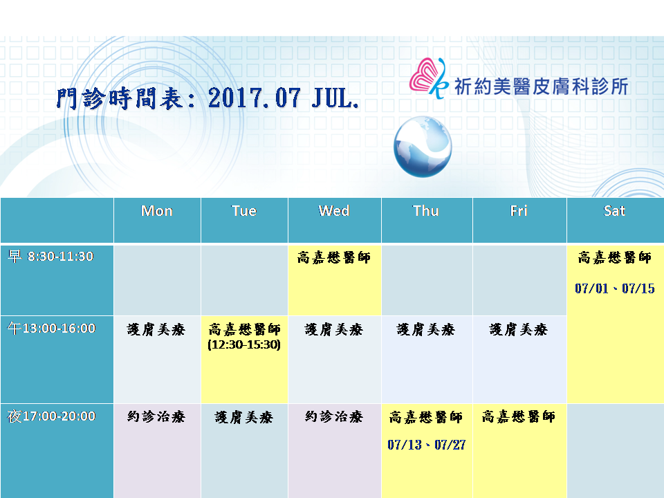 2017年07月開診時段如下:
