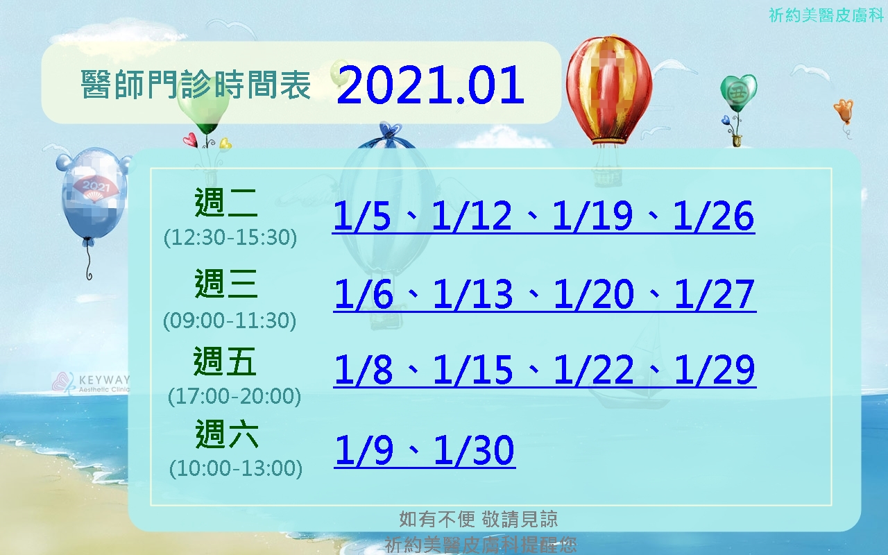 2021年一月醫師開診時段如下: